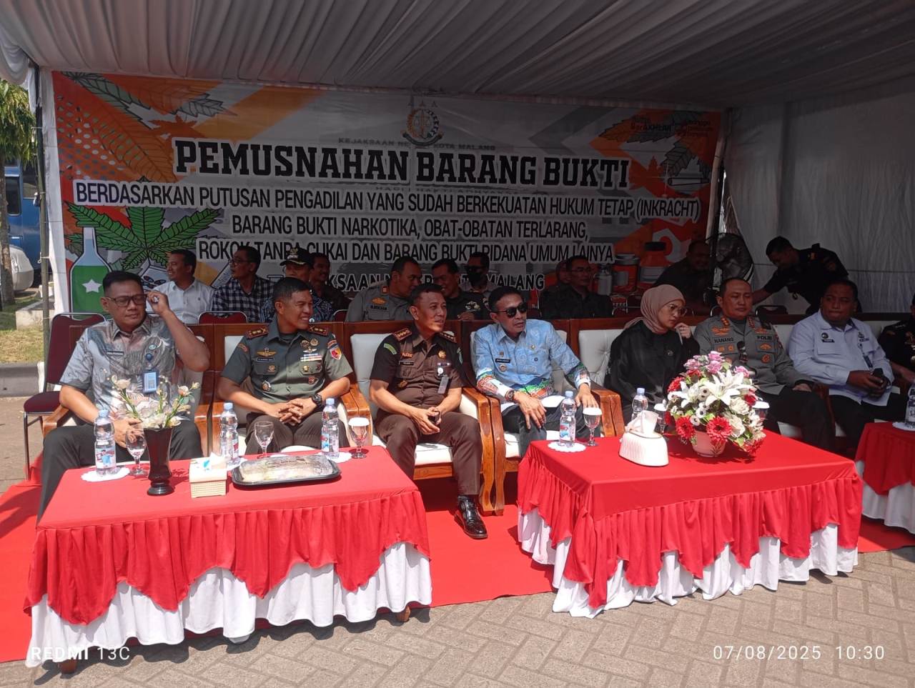 Malang, www.indomedia24.com – Kejaksaan Negeri (Kejari) Kota Malang bersama Pemkot Malang dan Forkopimda menyatakan komitmennya untuk menggempur peredaran rokok ilegal di wilayah Kota Malang. Komitmen ini diwujudkan dengan kegiatan pemusnahan barang bukti dari berbagai tindak pidana umum dan khusus di Kantor Kejaksaan Negeri Kota Malang, pada Kamis (7/9/2025).